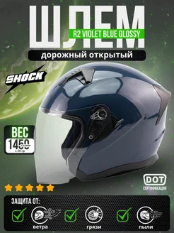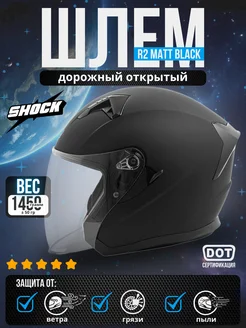 Шлем для мотоцикла защитный открытый с визором R2 MATT BLACK