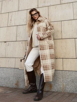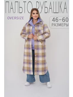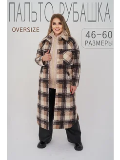 Пальто рубашка осеннее длинное оверсайз в клетку
