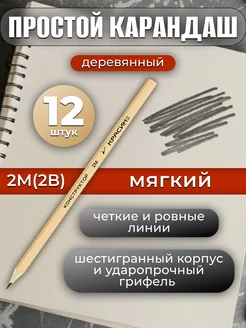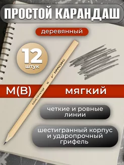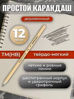 Карандаши простые чернографитные набор для школы 12 штук НВ