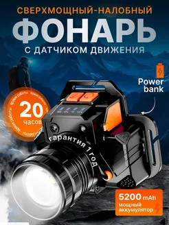 Фонарь налобный аккумуляторный мощный для рыбалки, похода