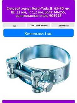 Силовой хомут Д 65-70мм, Ш 22мм, Т 1, 2мм, болт м, 1шт