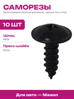 Крепеж автомобильный 6х20 мм, черный, с полусферой, 10 штук