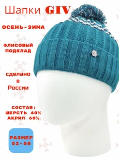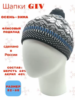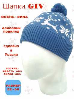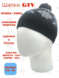 Шапка зимняя на флисовом подкладе с ремешком фиксатором