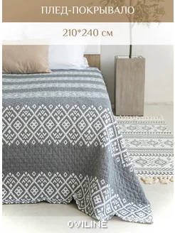 Стеганое хлопковое покрывало серое с орнаментом 210х240 см