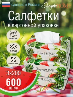 Салфетки бумажные сухие в коробке 600 шт, 3 уп по 200 шт