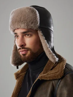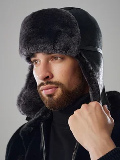 Шапка ушанка замшевая мутон овчина