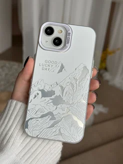 Чехол на iPhone 13 Серебряный Горы и Солнце