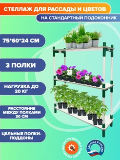 Стеллаж - полка для рассады и цветов на подоконник 18 см