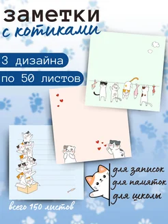 Блоки для заметок с котиками. 3 вида по 50 листов