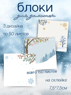 Листочки для заметок со снежинками. 3 блока по 50 листов