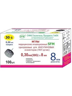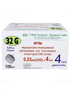 иглы для инсулиновых инжекторов32g 0,23х4мм sfm 100шт-1уп