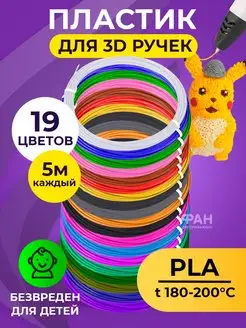 Пластик для 3D ручки PLA 19 цв по 5 метров