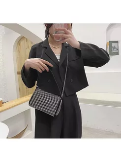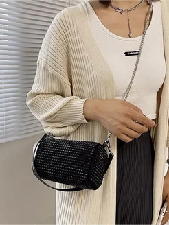 Маленькая черная сумка клатч со стразами
