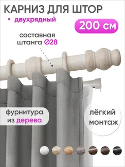 Карниз для штор и гардин двухрядный деревянный 200 см