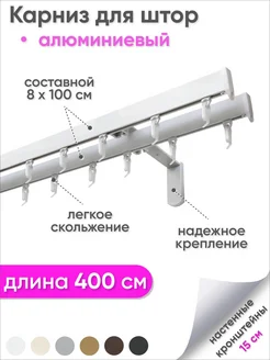 Карниз для штор двухрядный настенный 400 см алюминиевый