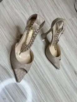 Босоножки кожаные с цепочкой и каблуком рюмочка