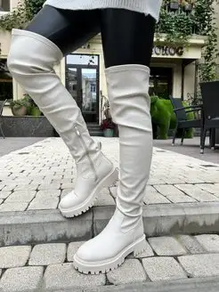 Кожаные сапоги ботфорты евро зима