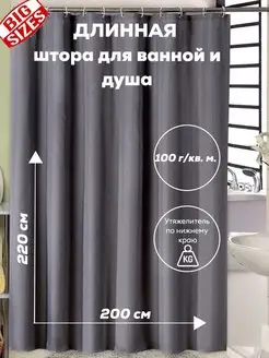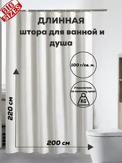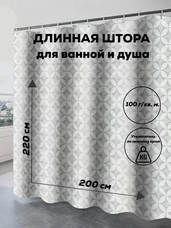 Тканевая штора для ванной 200х220 длинная