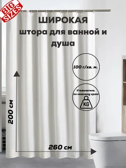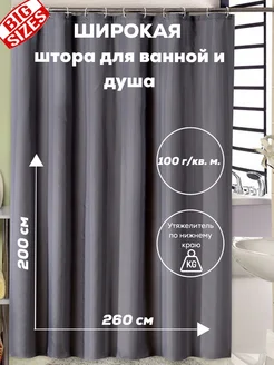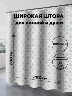 Широкая штора для ванной тканевая 260х200