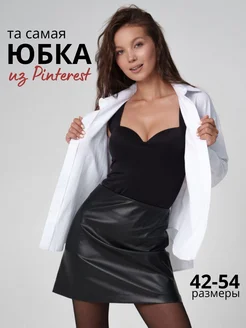 Юбка мини кожаная трапеция черная