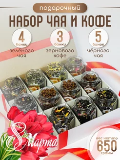 Чай листовой и кофе в зернах набор подарочный 12 шт