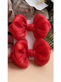 Бантики красные из органзы на заколках