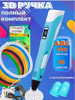 3D ручка с набором пластика ABS-10 цветов+трафареты, голубая