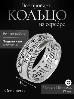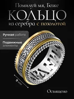 Кольцо из серебра 925 пробы православное Помилуй мя, Боже