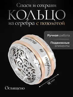 Кольцо из серебра 925 пробы православное Спаси и сохрани