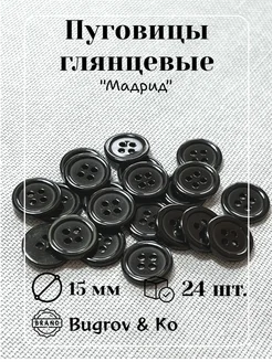 Пластиковые черные пуговицы ⌀15мм. 24шт