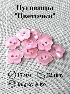 Пуговицы розовый цветочек ⌀15мм. 12шт