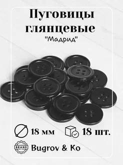 Пластиковые черные пуговицы ⌀18 мм. 18 штук