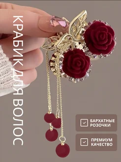 Крабик для волос металлический с розой