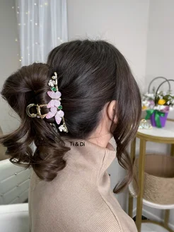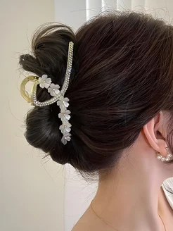 Крабик для волос металлический с цветами и стразами