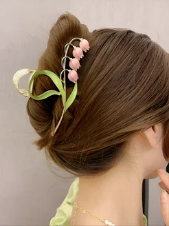 Крабик для волос большой металлический ландыш