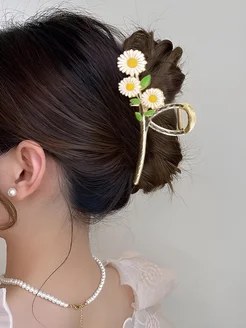 Крабик для волос большой металлический ромашка