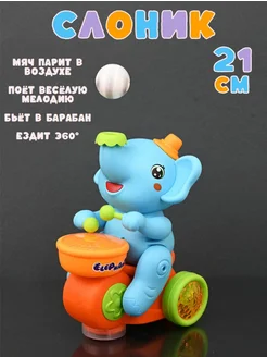 Музыкальная интерактивная игрушка слон барабанщик с мячиком