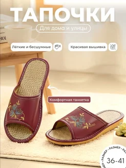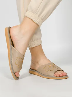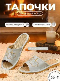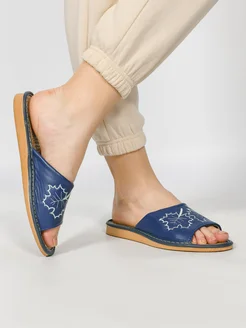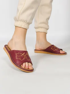 Закрытые домашние кожаные тапочки. Тапочки кожаные