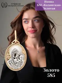 Подвеска на шею золотая Икона Казанская Божья Матерь