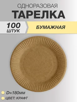 Тарелки одноразовые бумажные 18см 100 шт, Крафт