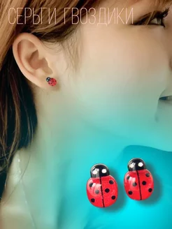 Серьги гвоздики Божьи коровки