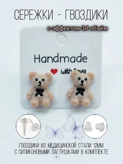 Серьги гвоздики мишки