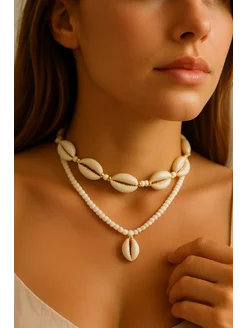 Жемчужное ожерелье на шею свадебное с ракушками чокер