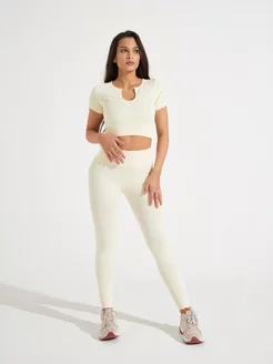Кроп топ спортивный с чашками в рубчик