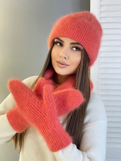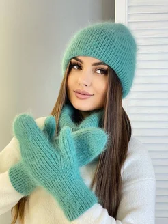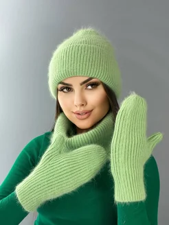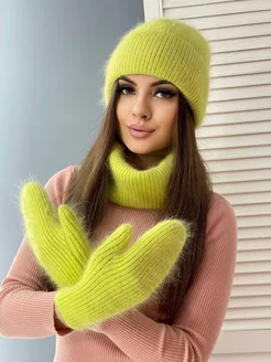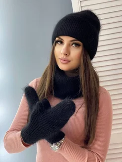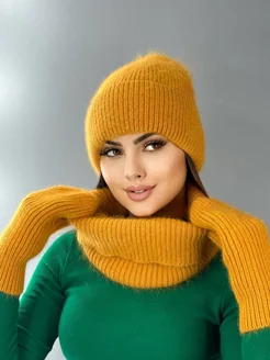 Зимний комплект из ангоры с шапкой снудом и варежками