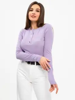 Приталенный лонгслив на кнопках в рубчик