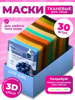 Набор тканевых масок для лица новогодний подарочный 30 шт