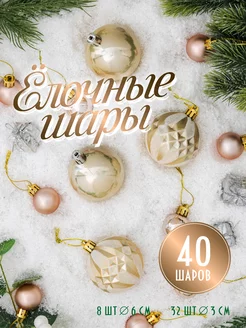 Набор новогодних елочных игрушек шары 6см + 3см 40 шт