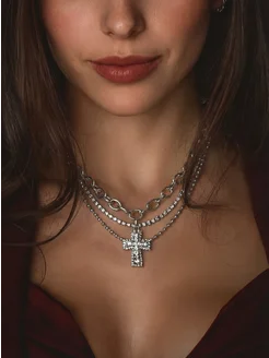 Многослойное колье с крестиком