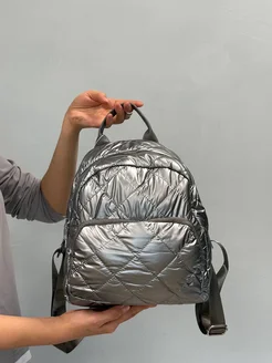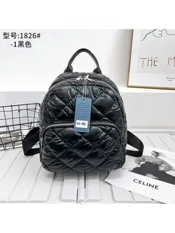 Рюкзак болоньевый женский черный стеганный ранец школьный